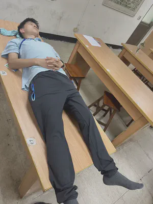 比起同學不在的理由,我更生氣的其實是交大不尊重我。交大當天筆試的考場有三間,一間是給甲組的學生去的。我因為學測分數太菜所以去不了甲組,而我這等建貨在交大眼裡肯定就是不太重要吧,所以他們給我安排了一間超爛的教室,課桌椅根本就是那種給小學生寫作業用的一體成形連桌椅,整張桌子的面積連一本分科複習講義都放不下。