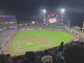 回去飯店的路上,Alice 幫我們買了晚上在舊金山球場的棒球賽門票,那一天是地主舊金山巨人對聖地牙哥教士。這不只是我在美國第一次看棒球,其實還是我這輩子第一次進場看職業的體育賽事。我在購物區晃了一圈過後發現我再不買東西我就要餓死了,最後隨手買了個漢堡跟大蒜薯條就上去座位區了。