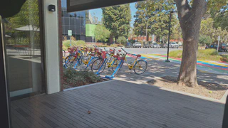 由於我是個社團幽靈,我完全沒有參訪過任何一個 Google 分部,所以這是我第一次踏入 Google。剛進入園區的時候其實挺沒有實感的,我本來以為一進去就會有一堆 Google 外觀的建築,但我們進去的入口其實就一兩個簡單的標示而已。不過想想也是,又不是什麼侏儸紀公園,這裡是工作的地方,沒有必要多盛大。但其實問題好像是 Google 真的太大了,所以也沒辦法到處都做裝飾。再深入一點之後就有感覺了,七彩(好像是四彩)的大樓映入眼簾,旁邊排滿了彩色沒有上鎖的腳踏車。太瘋狂了,Google 居然有自己的 UBike,還不用錢。聽到整個 Google 有近 20 萬人,而這裡就有三萬多個人,跟臺大一樣多,我才意識到這個全球前五大(寫的時候應該是第二大了)的企業的規模有多誇張的大。